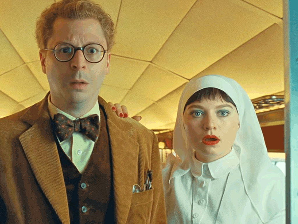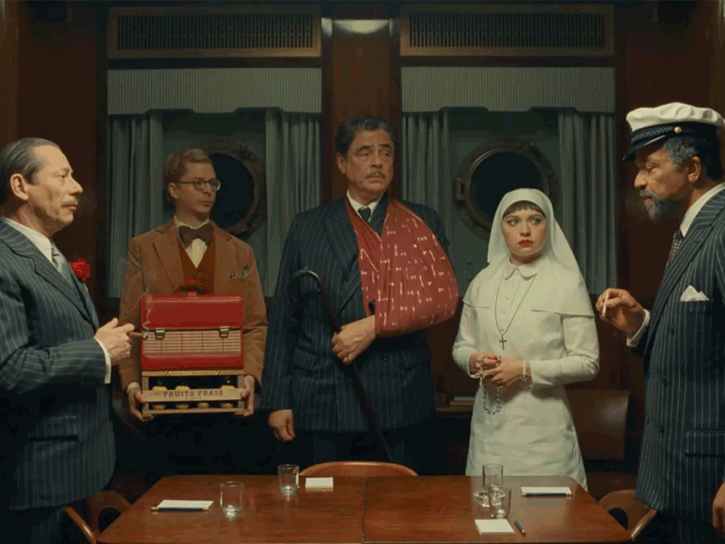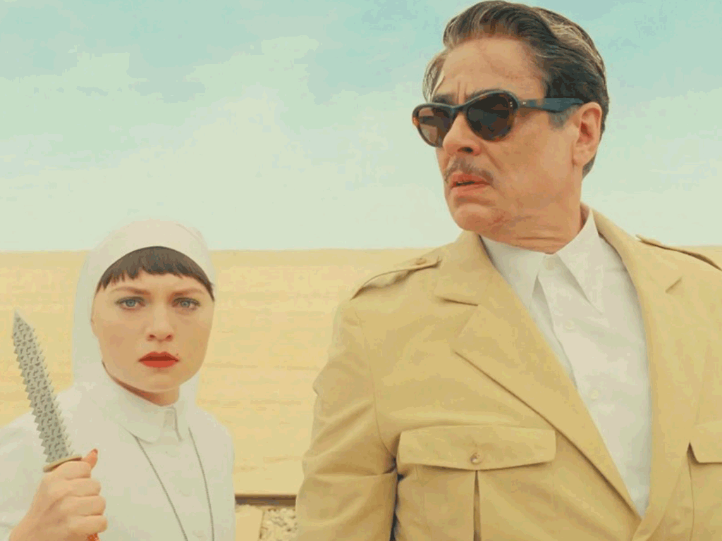 در بهشت سیاهسفید (که با سبک سورئال لوئیس بونوئل ساخته شده)، «بیل موری» (Bill Murray) نقش خدا را بازی میکند. او با لهجهٔ آرام و بیحوصلهاش، واقعاً یک شتر را از سوراخ سوزن رد میکند! این صحنه یکی از خندهدارترین و عمیقترین لحظات فیلم The Phoenician Scheme (طرح فنیقی) است. این سکانس ارجاع مستقیم به آیه معروف انجیل دارد: